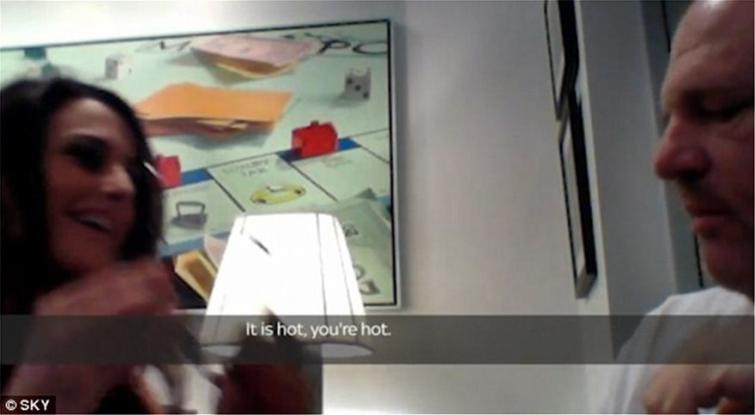 Στο βίντεο που βλέπει για πρώτη φορά το φως της δημοσιότητας ο παραγωγός του Χόλιγουντ, απλώνει τα χέρια του και χαιδεύει τα πόδια της Τόμπσον, και ακούγεται να της λέει διάφορα ερωτόλογα και να τη ρωτάει εάν μπορεί να την φλερτάρει.